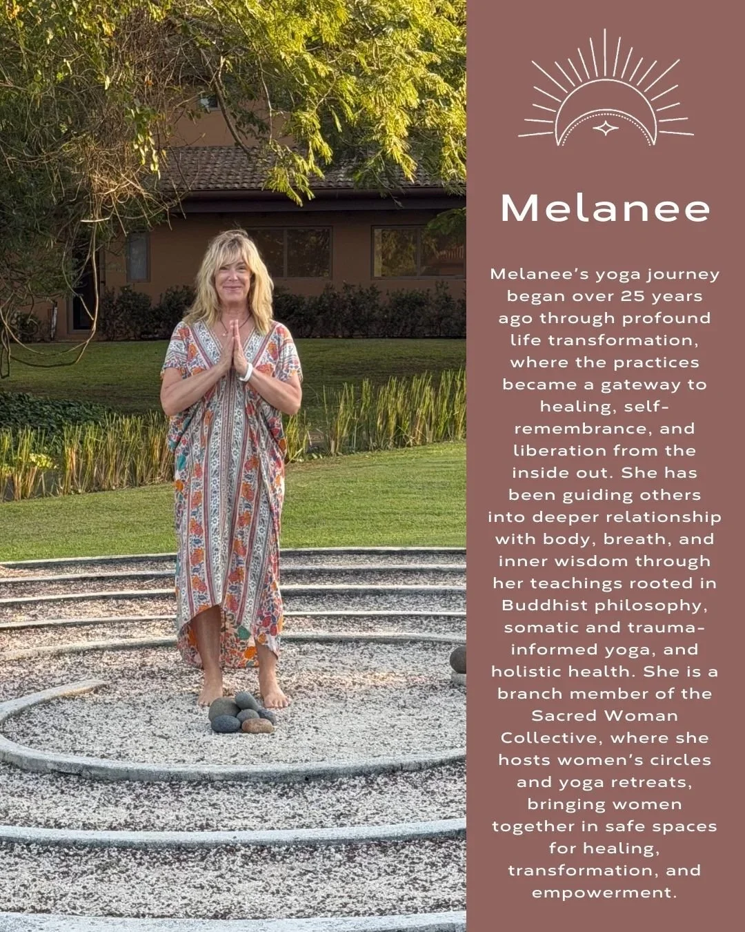 Melanee’s yoga journey began over 25 years ago through profound life transformation, where the practices became a gateway to healing, self-remembrance, and liberation from the inside out. She has been guiding others into deeper relationship with body, breath, and inner wisdom through her teachings rooted in Buddhist philosophy, somatic and trauma-informed yoga, and holistic health. She is a branch member of the Sacred Woman Collective, where she hosts women’s circles and yoga retreats, bringing women together in safe spaces for healing, transformation, and empowerment. To find out more about Melanee, visit melaneecooper.com/about-melanee-cooper.
